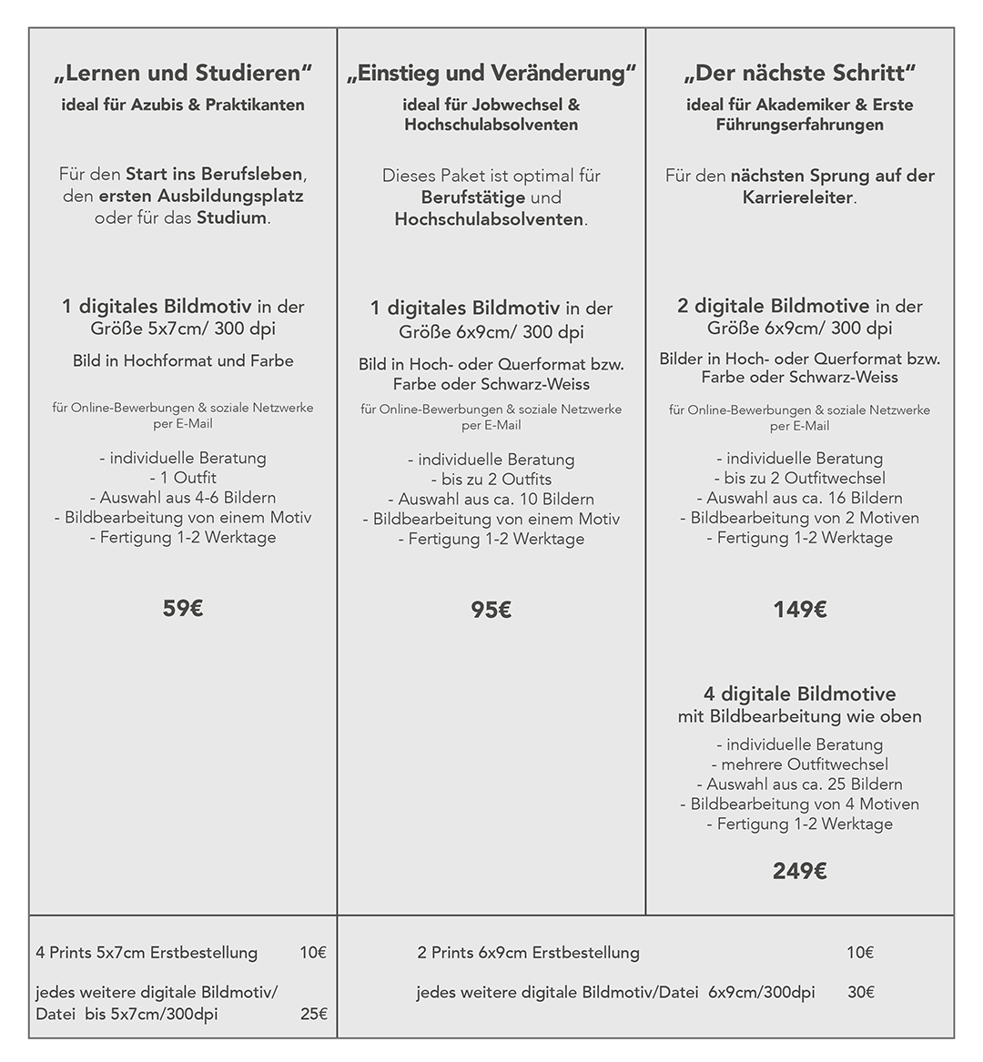 „Der nächste Schritt“ ist unser Paket für den nächsten Schritt auf der Karriereleiter inklusive zweier unterschiedlicher Bildmotive für Bewerbung und die Positionierung auf LinkedIn, Xing und Bewerbungsplattformen.
